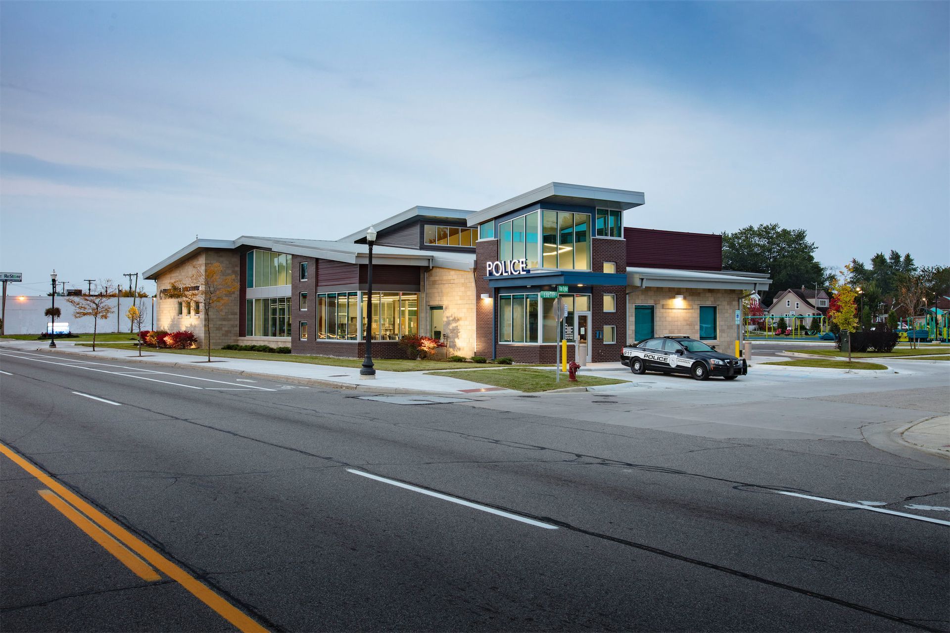 Architecturally, the building’s contemporary modern design employs a mix of materials, including block and brick, metal siding, and highly efficient windows. These elements, along with a standing seam metal roof, create a durable and visually striking structure. The development revitalizes the 9 Mile and Van Dyke intersection, reinforcing the city’s commitment to investing in the community’s growth and well-being.