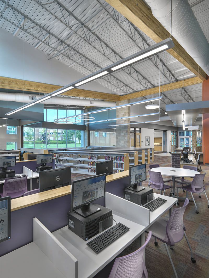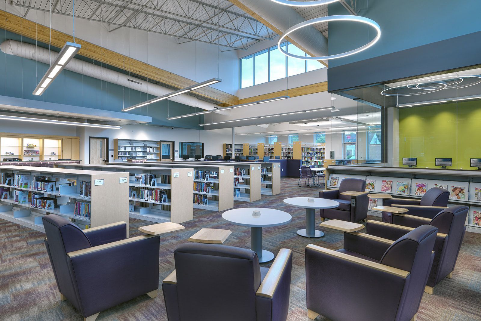 The project reflects the community's commitment to maintaining vital public resources while demonstrating how modern library design can create inspiring spaces that adapt to changing user needs and technological requirements. The warm, welcoming environment ensures the library will serve as a vibrant community hub for generations to come.