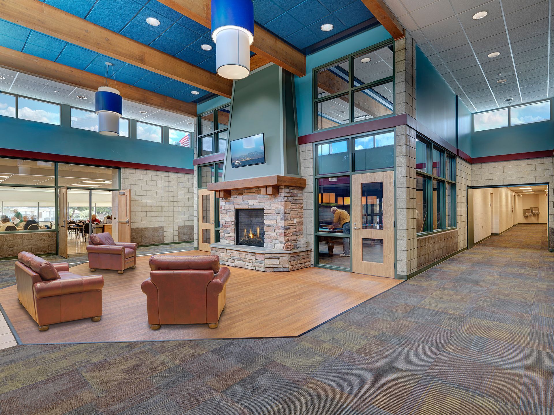 The Roseville-Eastpointe Recreation Center expansion exemplifies how thoughtful renovation and addition can revitalize a community resource while addressing critical structural challenges. The 10,200-square-foot addition creates dedicated spaces for senior programming, including a welcoming central gathering lobby, fitness center, multipurpose room, activity rooms, computer lab, and game room. PARTNERS' design provides separate, distinct entries for recreation and senior center users, enhancing operational efficiency and user experience.