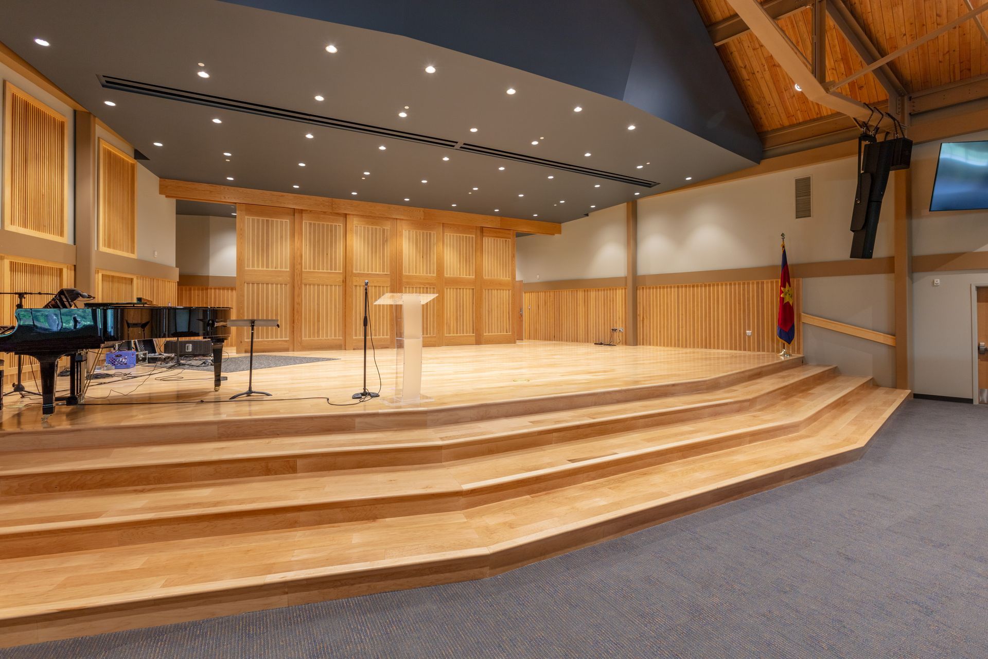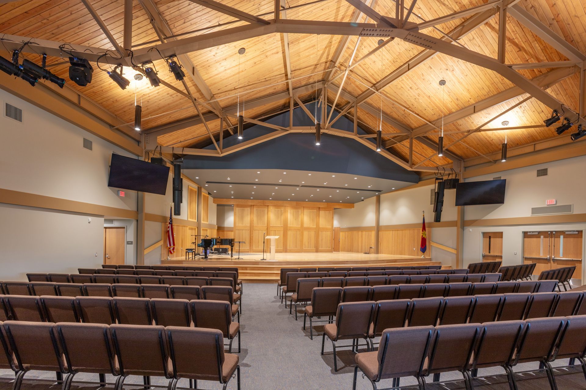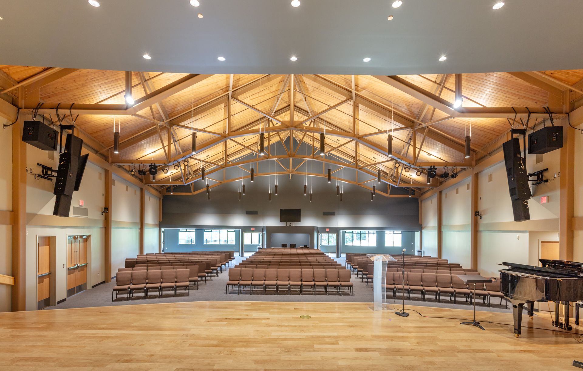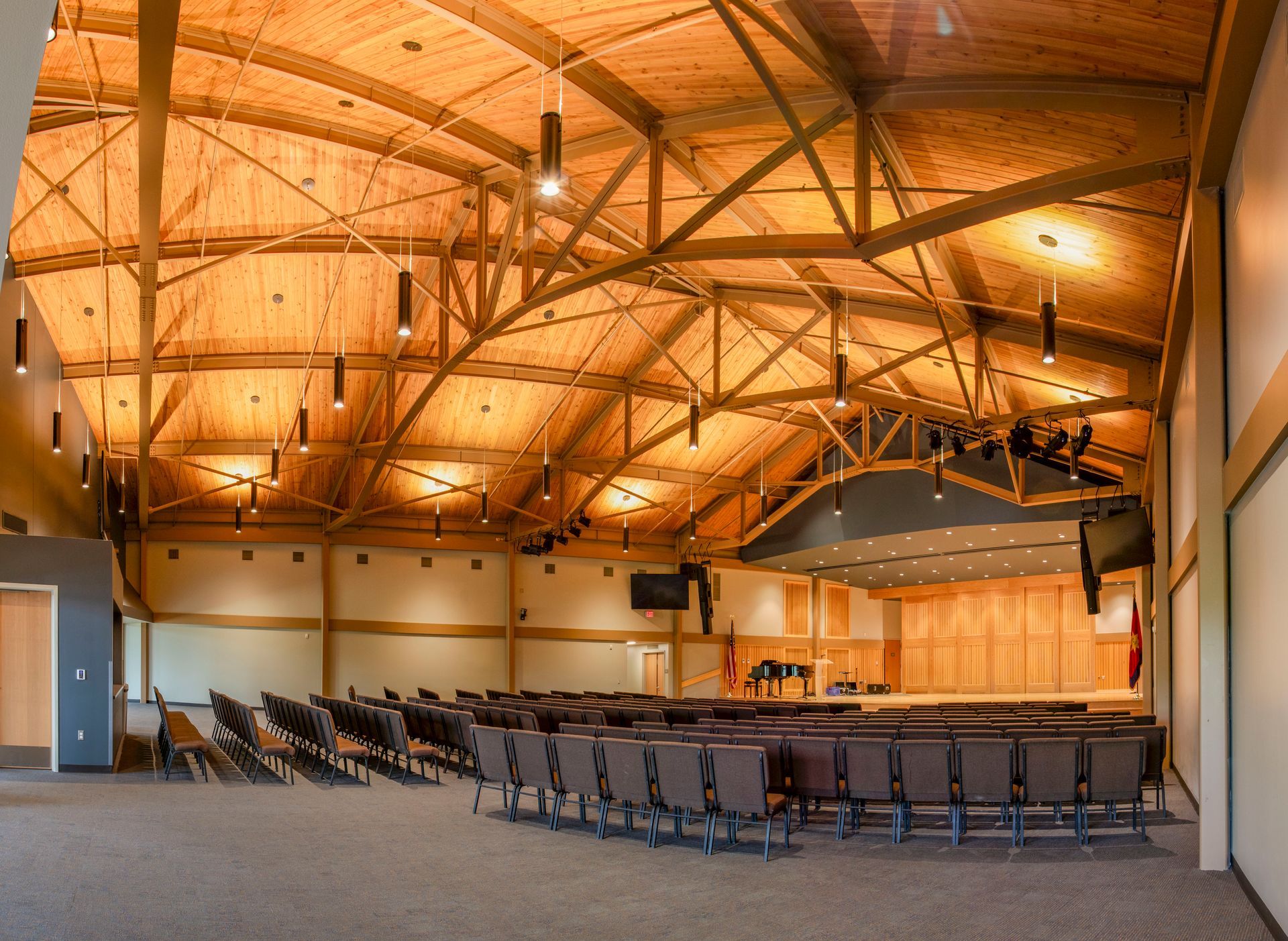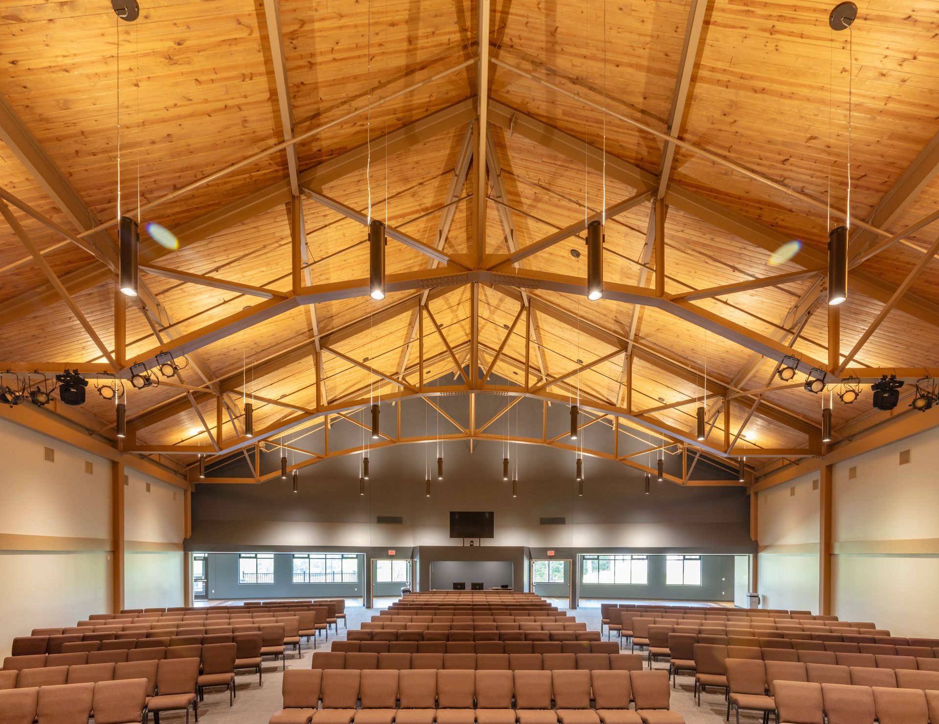 The building complements the natural setting of the camp, offering a welcoming environment where campers and staff can come together for music, theater, and community events. The flexible performance space accommodates a variety of programming, from chapel services and talent showcases to educational workshops and camp-wide celebrations.