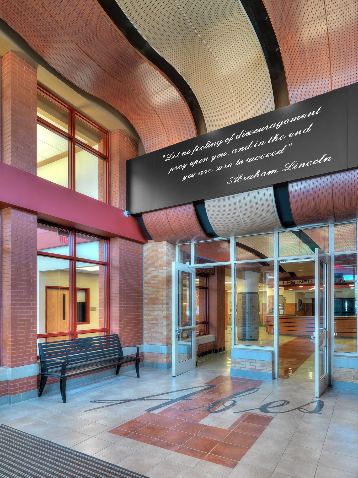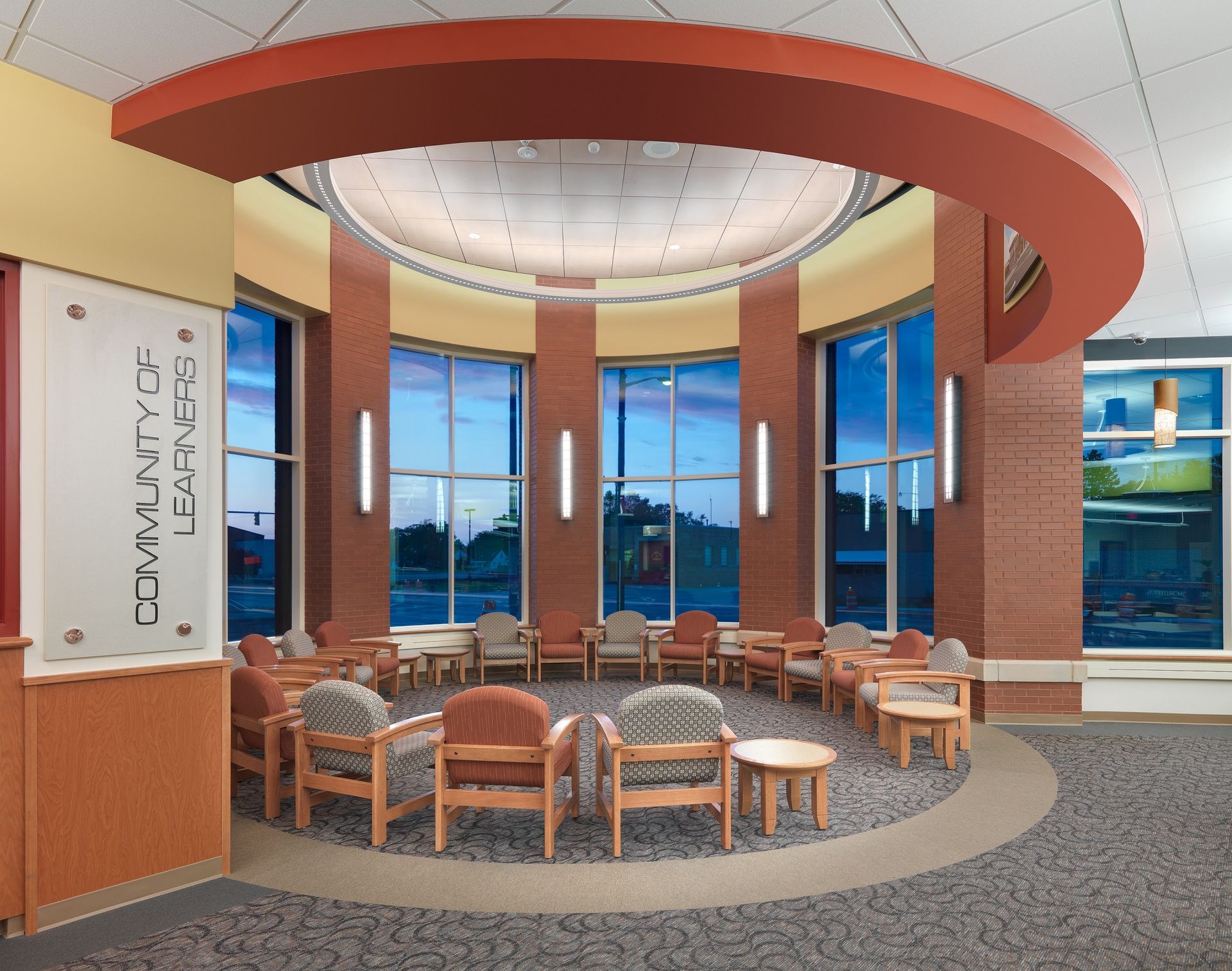 The existing building was a 1950's building with an aging infrastructure and had very few inspirational spaces within it. The project involved expanding and renovating the existing building; the end result was an inspiring, high-performing learning environment. A few challenges involved construction while the facilities were occupied as well as this project involved a tax increase for the community.