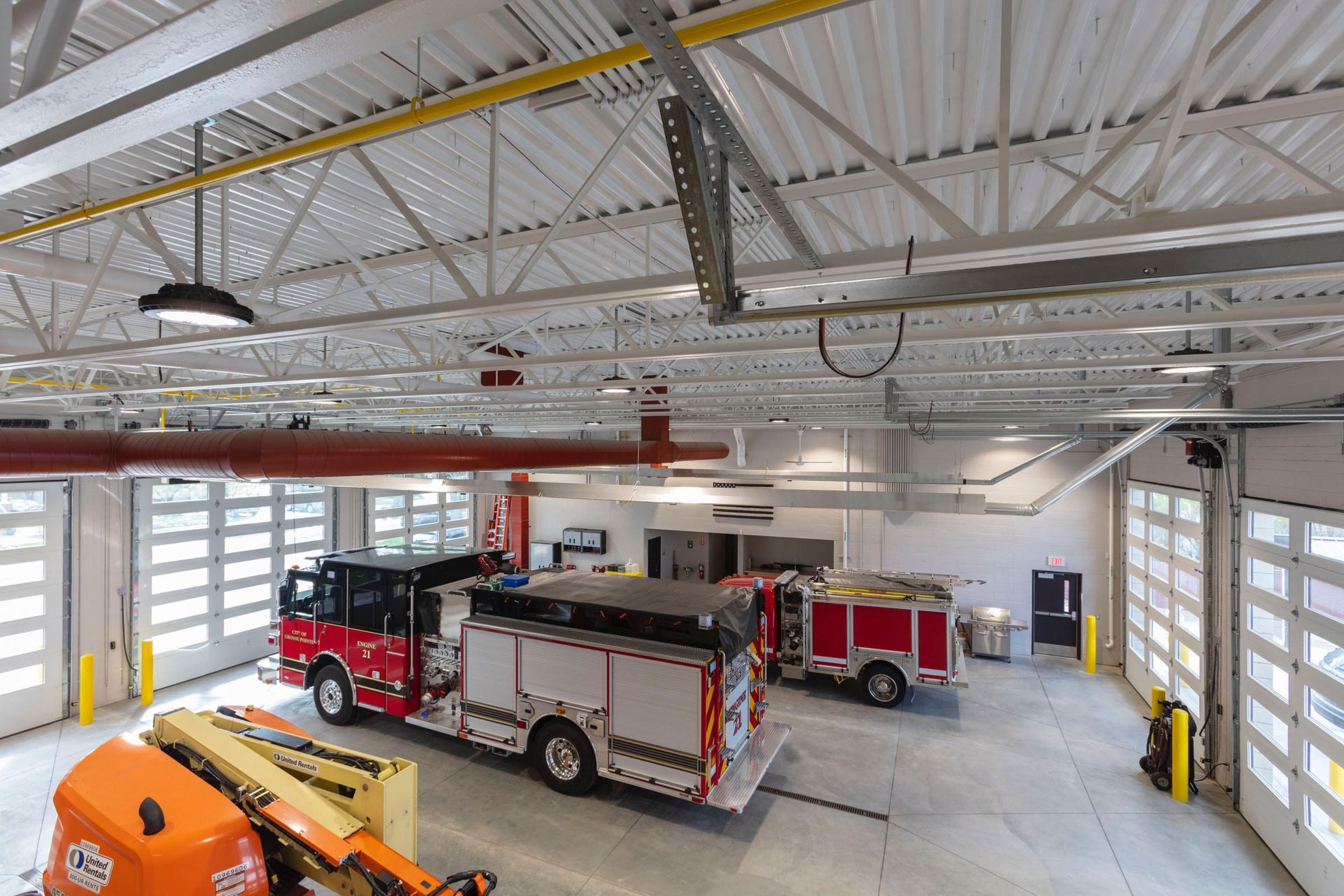 Ultimately, PARTNERS configured a .55-acre site to house a 17,500-square-foot facility that includes a three-lane pull-through apparatus bay, a three-level training tower, and on-site parking for 23 vehicles. The compact site design required innovative solutions to maximize functionality and efficiency within the constrained footprint. The training tower provides a dedicated space for essential firefighter drills and skills development, while the apparatus bay supports rapid deployment and seamless operations for the department’s emergency response teams.