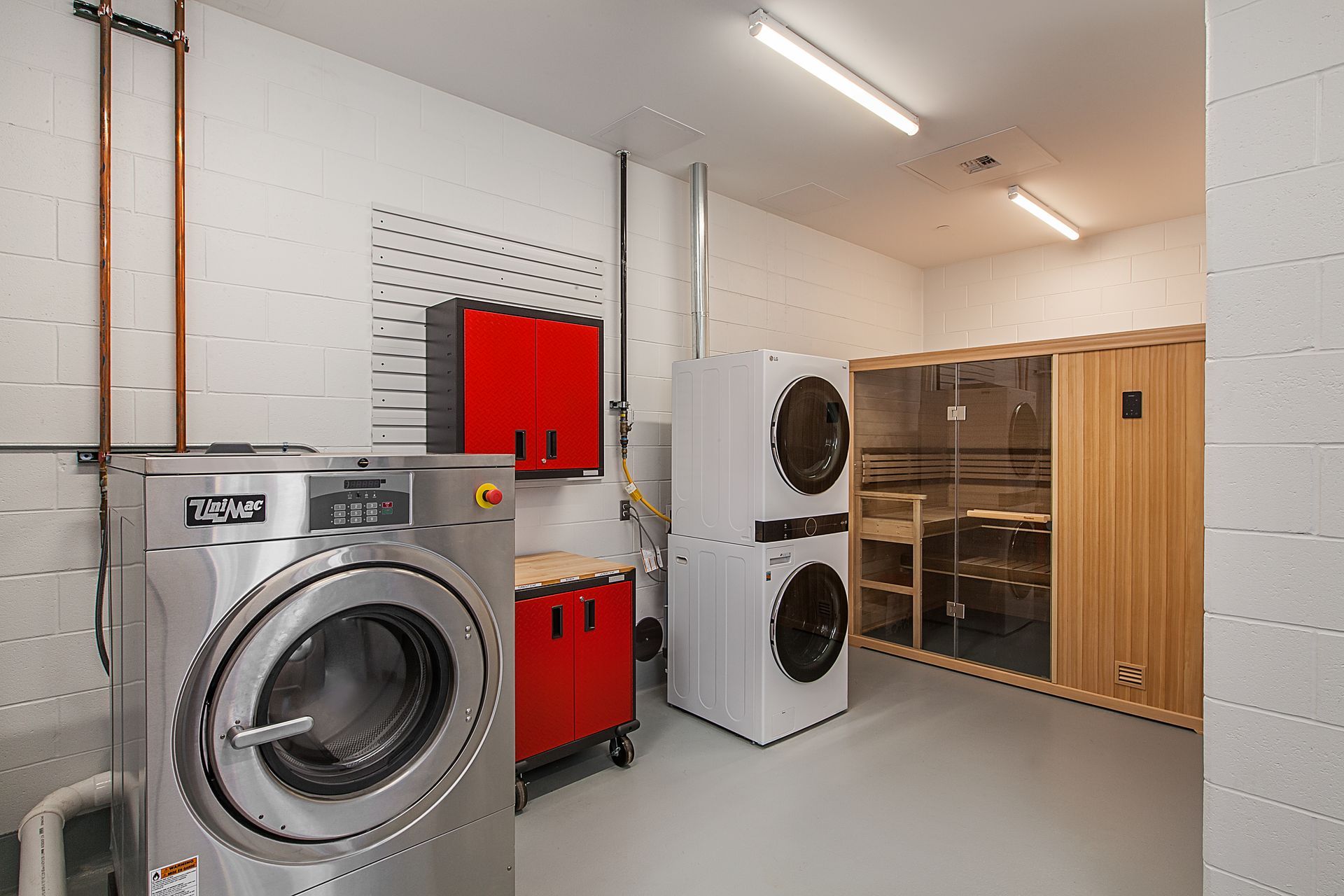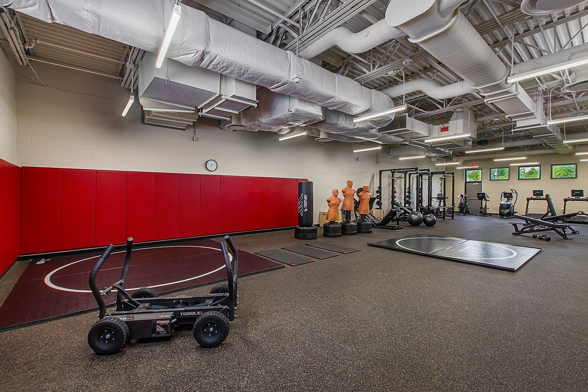 A shared fitness and wellness suite reinforces the Township’s commitment to first-responder health and readiness. The fitness room is designed as a collaborative space for fire, police, and staff members, supporting cross-department use while accommodating both tactical training and traditional cardio and strength equipment. Integrated locker rooms, showers, and durable flooring allow personnel to transition seamlessly between training and duty.