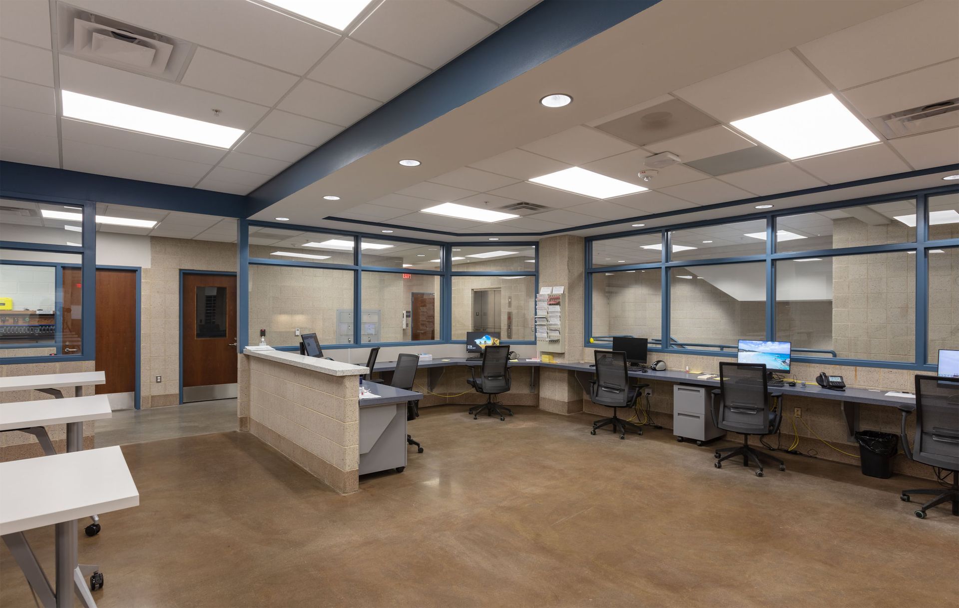 Completed in February 2021, the 61,000-square-foot facility is strategically located adjacent to the existing District Court building to streamline operations. The design includes a secure patrol vehicle garage and a skybridge connecting the headquarters to the courthouse, ensuring efficient and safe prisoner transfers. The facility accommodates Dispatch and Communications, Criminal Investigations, Processing and Holding, Records and Evidence Processing, and Community and Training Room areas. Additionally, space for a future gun range was incorporated into the design, ensuring flexibility for future needs.