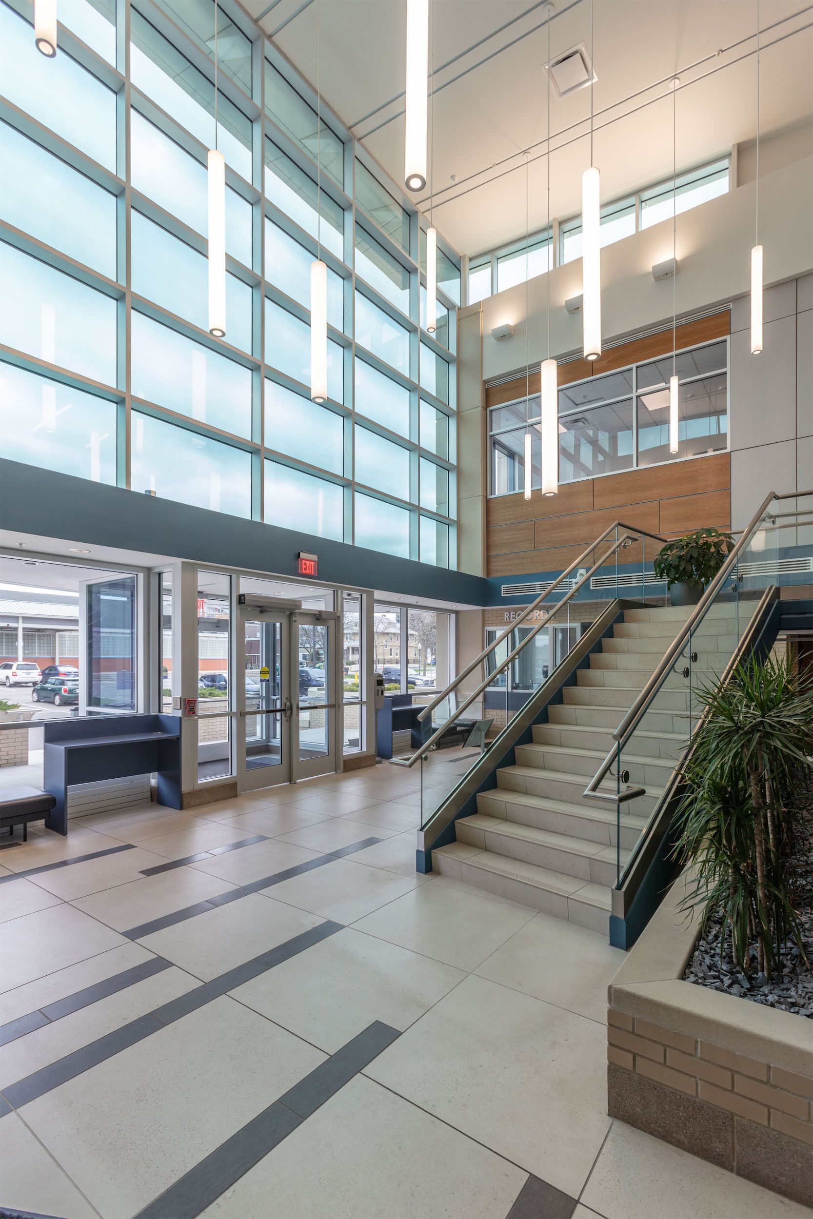 Key features of the new headquarters emphasize accessibility, functionality, and sustainability. The spacious lobby and wide entrances improve circulation for visitors and staff, while secure parking areas enhance officer safety and response times. Technological advancements and energy-efficient systems were integrated to create a modern, environmentally responsible facility.
